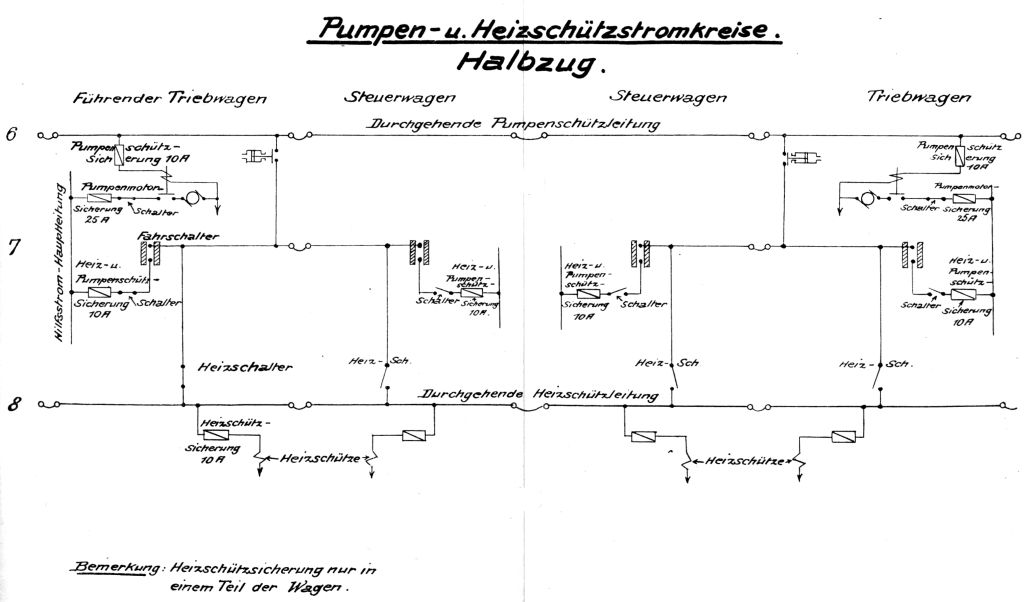 Pumpen- und Heizschützstromkreise beim Halbzug