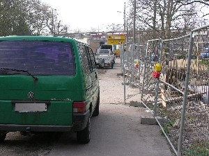 04.01.2005 - Die Schlamperei der Bahn geht weiter: Seit Monaten steht ein Bauzaun über die ganze Länge des Bahnsteiges 1 (von Berlin) fast an der Bahnsteigkante. Ein Rollstuhlfahrer oder ein Kinderwagen würde im Gefahrenbereich des mit 140 km/h befahrenen durchgehenden Hauptgleises stehen. Aber die kommen ja sowieso auf diesem Bahnsteig nicht weg, weil doch der Aufzug für diesen Bahnsteig seit Dezember 2004 ständig außer Betrieb ist. Aber auch jeder andere Reisende ist gefährdet. Der Fahrplankasten auf dem selben Bahnsteig ist wegen des davor gestellten Bauzaunes nicht erreichbar. Zwischen Bauzaun und Fahrplan mußte eben Platz für eine Karre bleiben, wie man unschwer erkennen kann! Und das rechte Bild zeigt, daß die Bahn den Logistikplatz der Baustelle “Kaiserbahnhof” auf die Straße Am Neuen Palais verlegt hat. Bürgersteig und Radweg wurden einfach zuasphaltiert. Baufahrzeuge entladen stundenlang auf der Straße und blockieren sogar die Bushaltestelle. Die Busfahrer können ein Lied davon singen. Und Pkw’s der Baustelle sind zuweilen im Dutzend auf dem Bürgersteig abgestellt. Und das geht schon über 1 Jahr so. Die Polizei ist nicht zuständig und das Ordnungsamt drückt beide Augen ganz fest zu. Steht dort etwa einer auf der Lohnliste der Bahn? Und wieso schläft die Bauüberwachung der Bahn so tief und so fest und schon so lange? Na, weil doch noch gar nichts passiert ist. 13.01.2005: Positive Meldung! Im vorderen Bereich des Bahnsteiges wurde der Zaun zurückgestellt. Er steht zwar noch vor dem Fahrplankasten, aber nun kann man die Fahrpläne wenigstens lesen. Geht doch! Danke! Inzwischen steht er sogar wieder hinter dem Kasten und ist zum Teil schon ganz weg. |