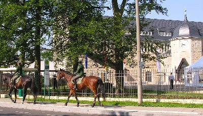 Um 9:40 Uhr ist die Reiterstaffel der Polizei noch die Attraktion am Kaiserbahnhof. |